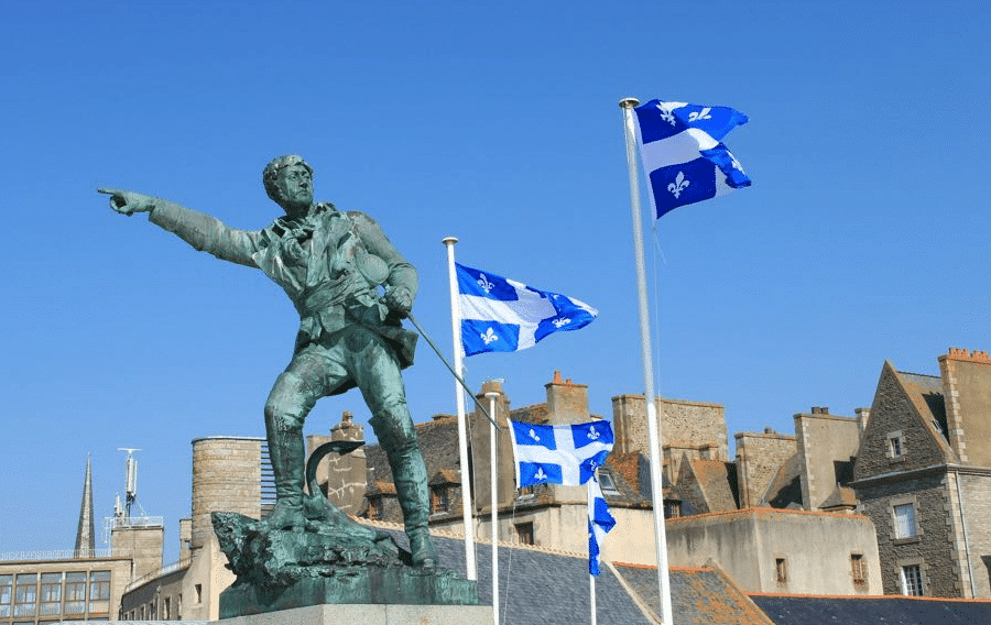 Au loin, la tache rouge entoure un pin blanc, symbole des indiens du Québec. Ce symbole a d’ailleurs été dernièrement rajouté au milieu du drapeau de Montréal !