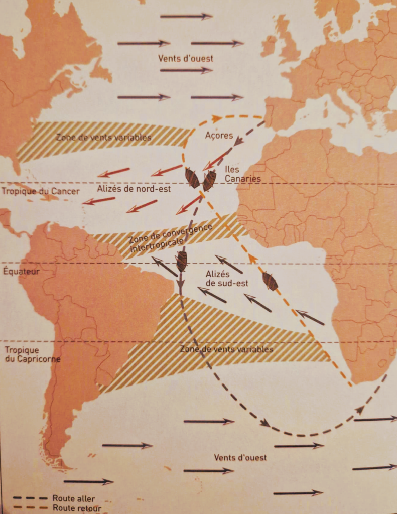 Bien avant l’établissement de cartes précises, ce sont ainsi les vents eux-mêmes qui ont tracé les premières routes de l’Atlantique moderne.